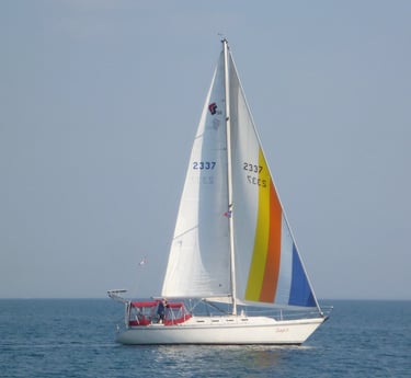 Enjoy sailing on a 36-foot sloop in the stunning waters of Lake Huron.