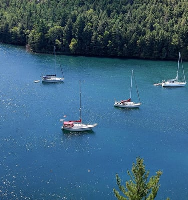 His passion is teaching sailing, and cruising the North Channel , one of the finest fresh water cruising grounds in the world.